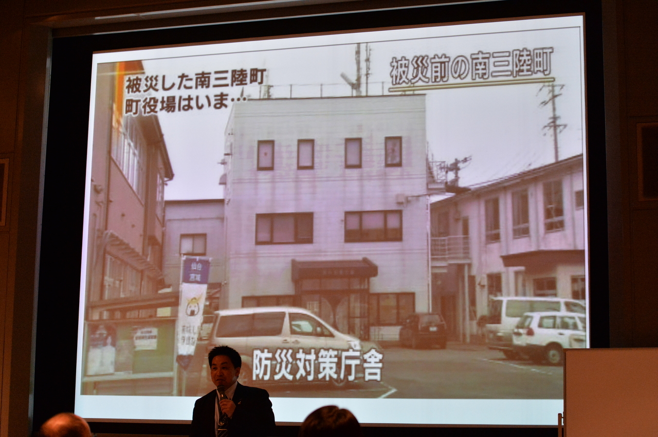 講師は南三陸町出身で南三陸ホテル観洋にお勤めで、語り部バスに乗務なさっている伊藤俊さんと南三陸町復興応援隊員の坂下邦彦さん