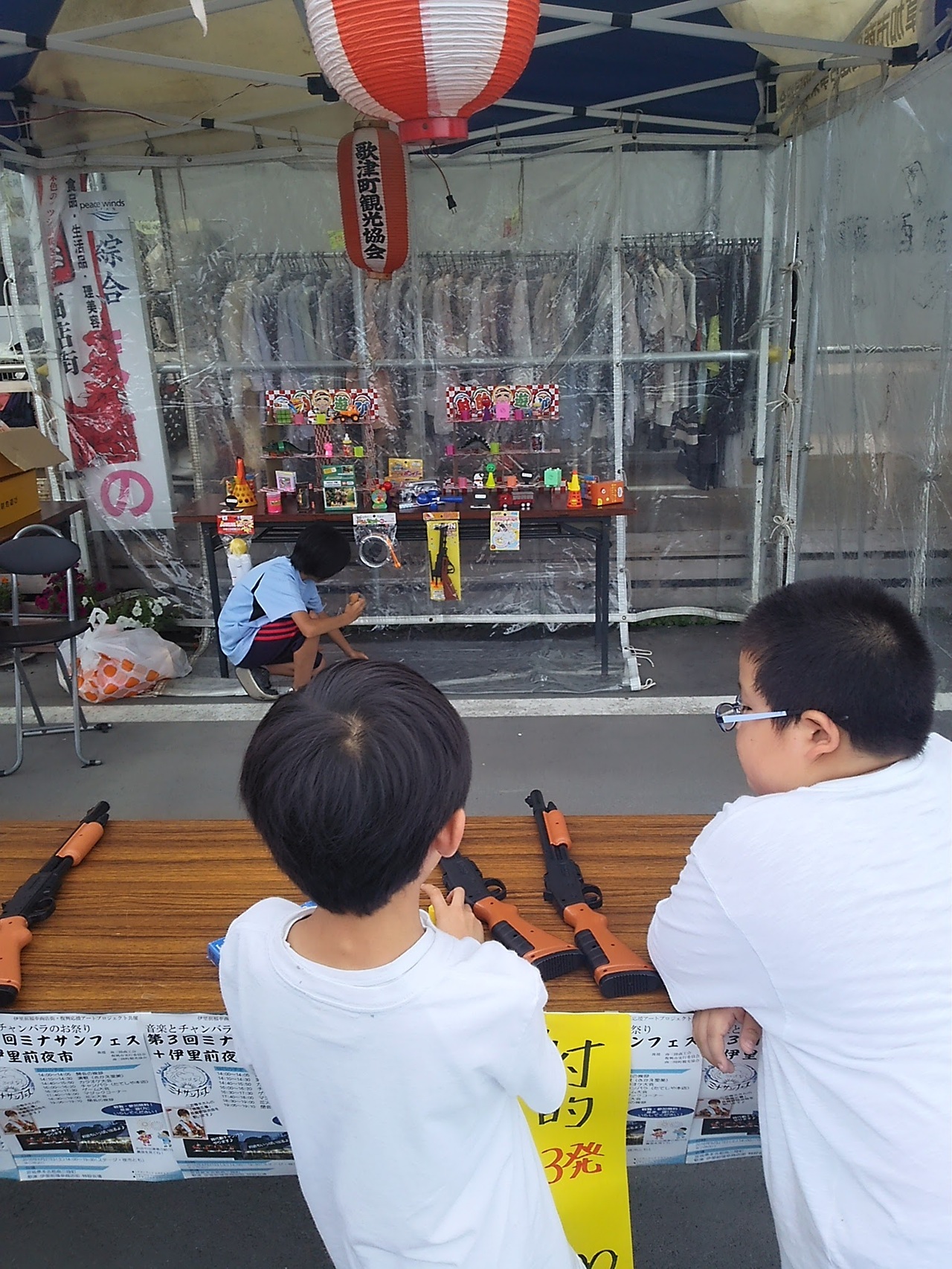 カラオケ大会、「たてしや本店」さんによるチャンバラと続き、ゲーム大会、マジックショー、そして見に花火大会と盛り沢山。