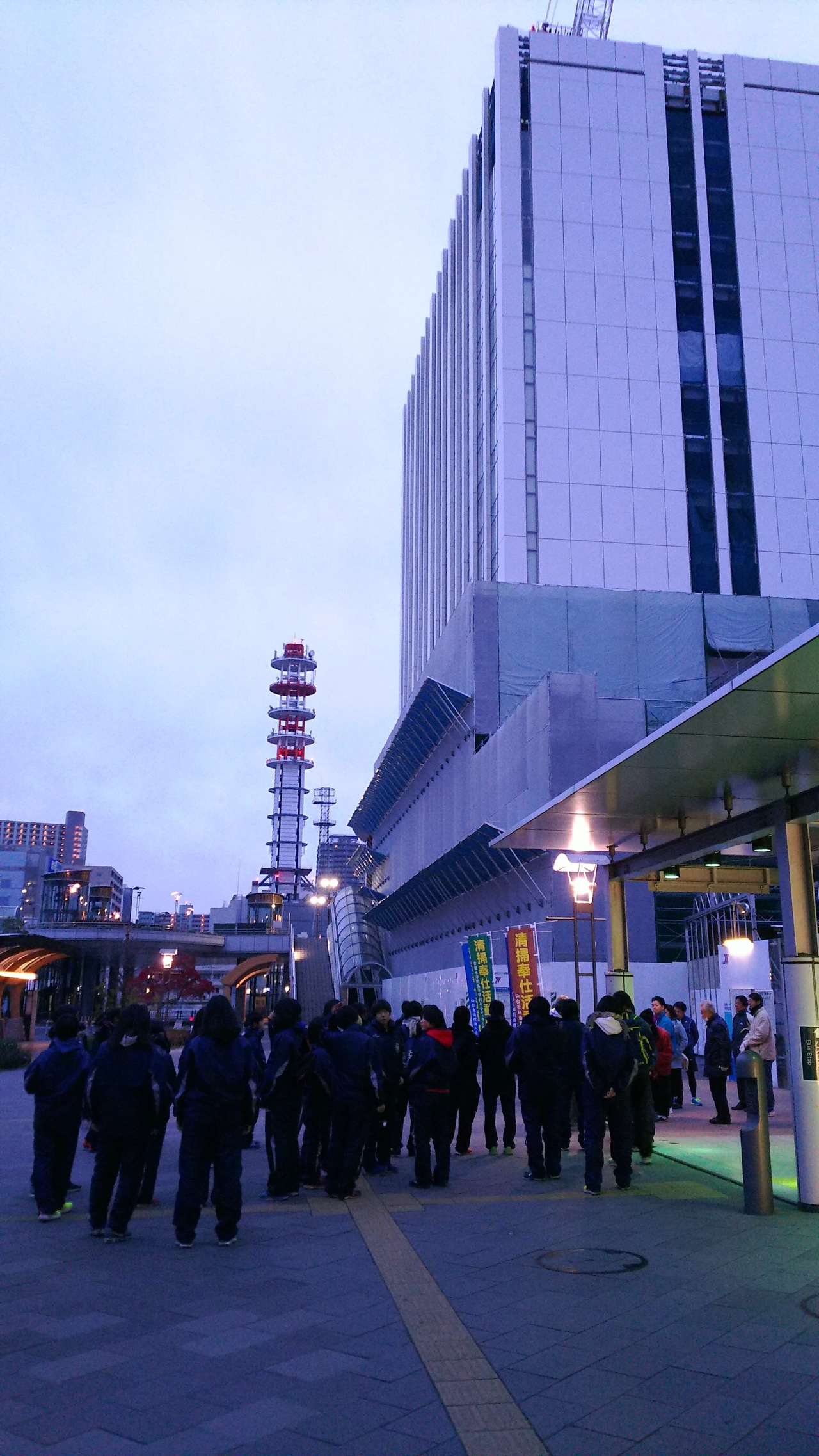 2016年11月19日 毎月恒例の夢拾い、今月から冬時間で6:30から開始ですが、集合した時はまだ薄暗い仙台駅東口です。 寒さにも負けず、「おはようございます!」と明るく元気に集合する常盤木学園女子サッカー部の皆さん。 奉仕の精神を持った彼女達、その強さの秘密の様に思います。 今回は66名の参加でした。 お疲れ様でございましたm(__)m