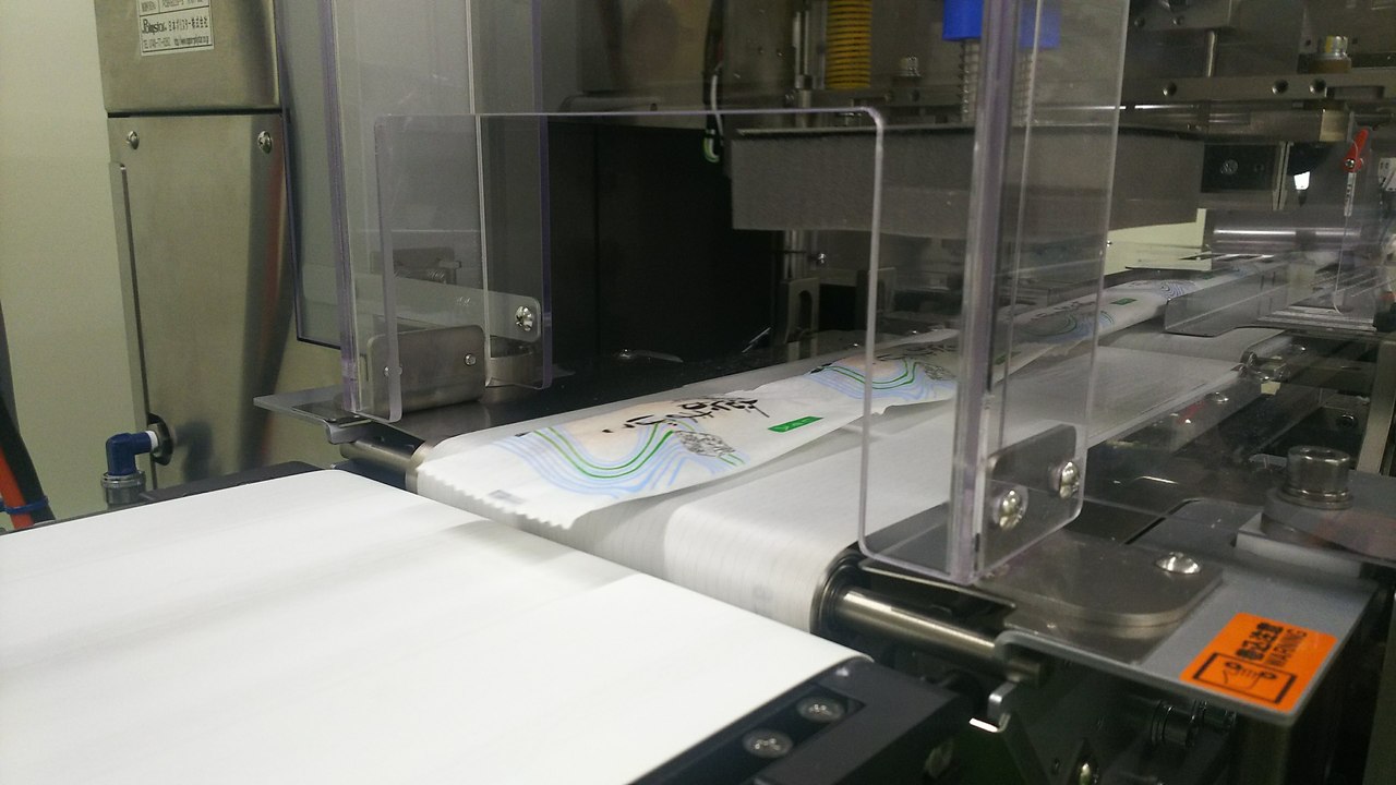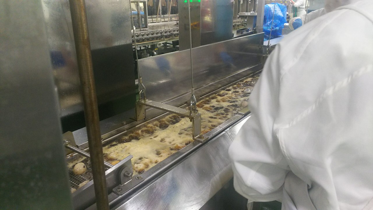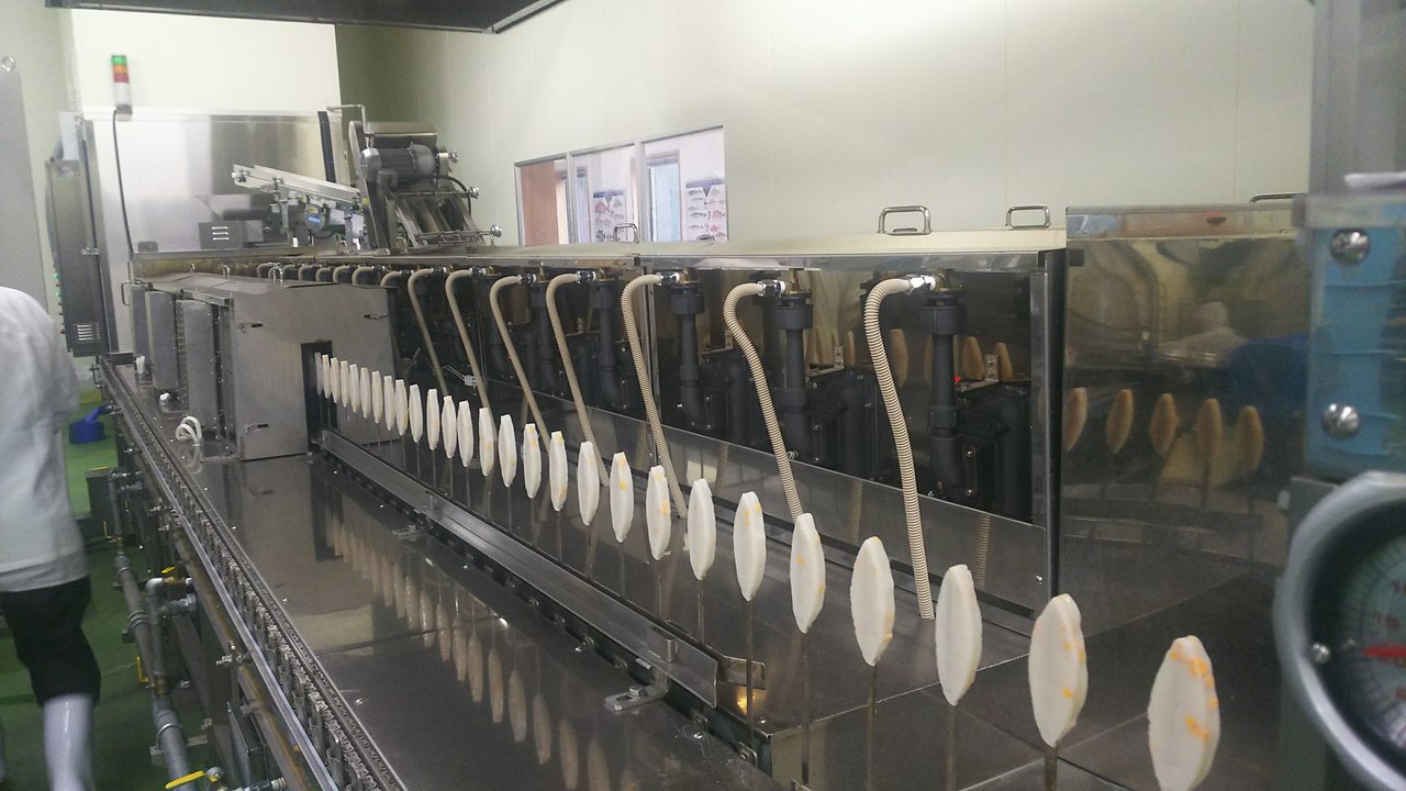 ラインは目には見えないエアカーテンで囲まれていて、工場内の空気は常に換気されて清潔な環境を保つように出来ている