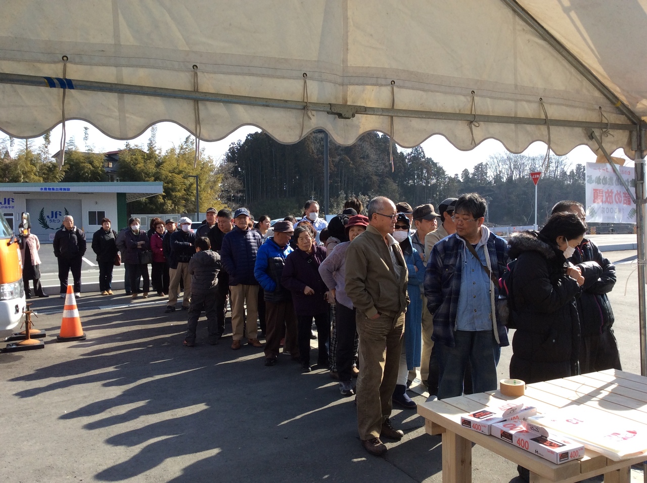 この時期しか味わえないとあって、10時から開催の「生わかめ・生めかぶの詰め放題」には2時間前から並び始めてあっと言う間に長蛇の列