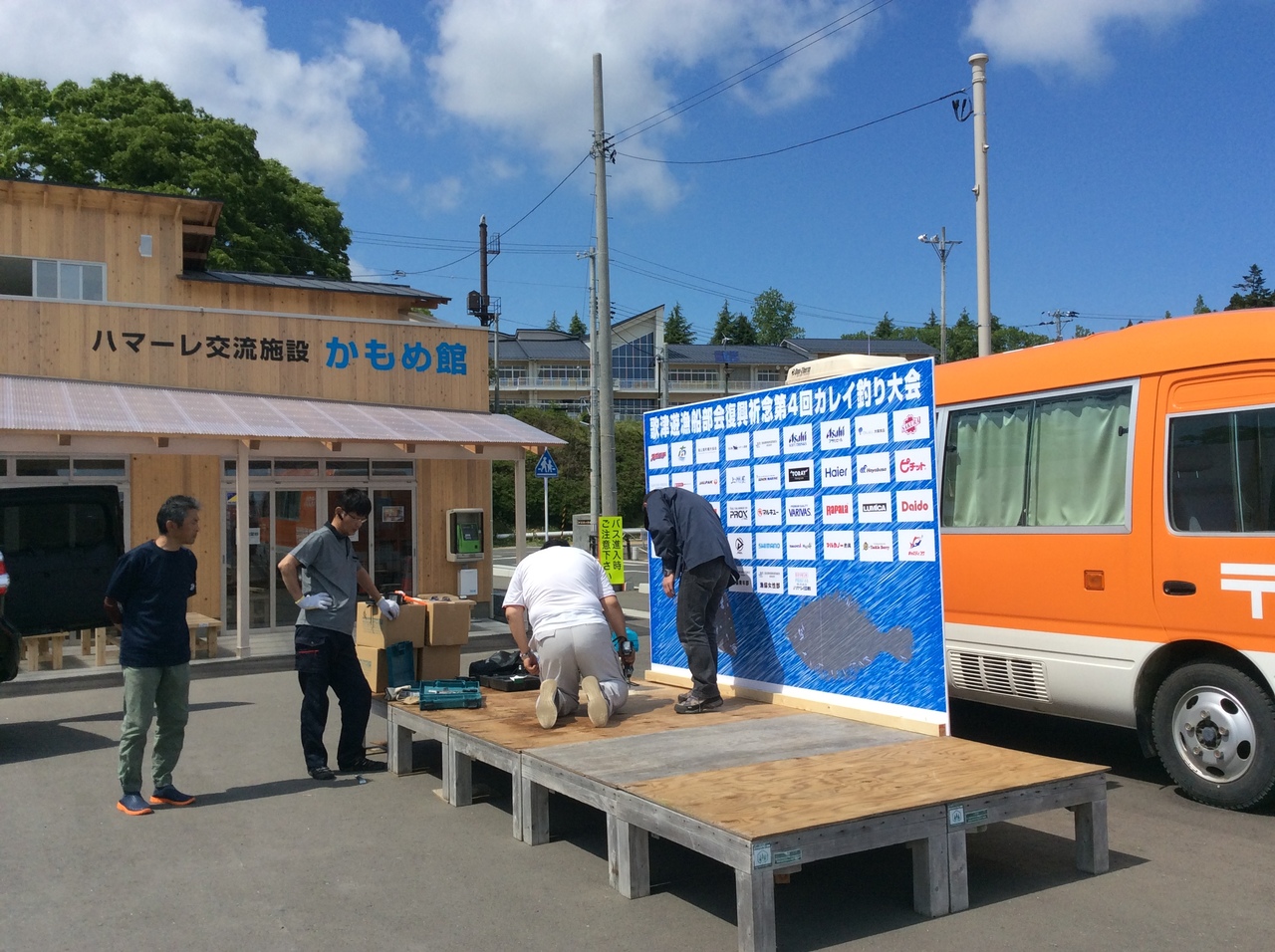 折しも、明日開催のカレイ釣り大会の表彰式の準備中