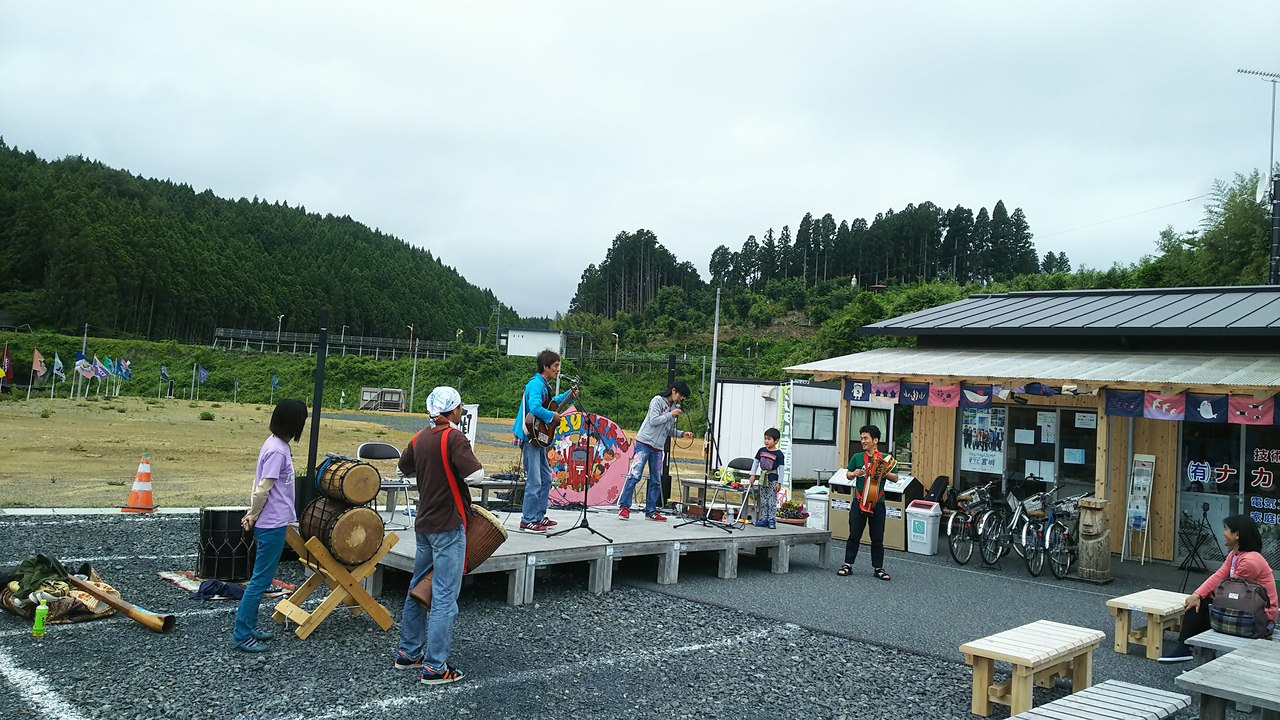 17日には天候もいくぶん回復、仮設ステージにてのライブ