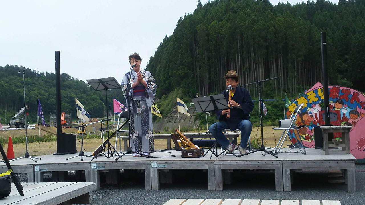 農事組合法人 縄文の丘信州松本中山そば振興会の皆さんによる手打ちそばの販売と民謡、相模の風THEめおとのお二人による歌津応援ライブが開催されました
